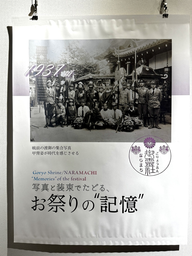9月29日(日)から奈良町にぎわいの家にて開催しておりました、写真と装束でたどる『お祭りの記憶』展は、本日をもちまして無事に終了いたしました。期間中、多くの皆さまにご覧いただき、心より感謝申し上げます。また、ご協力いただきました奈良町にぎわいの家の皆様、誠にありがとうございました。