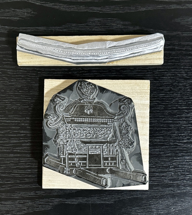 お神輿と奉納刀のデザインは消しゴムはんこで作成し、御朱印の紙には金銀の砂子が入った煌びやかな半懐紙を使用しています。はんこを押した後、一枚一枚、感謝の気持ちを込めて書かせて頂いております。