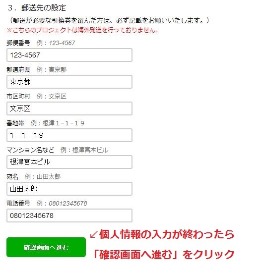 4)プロジェクトが不成立となった場合の返金口座情報を入力し、