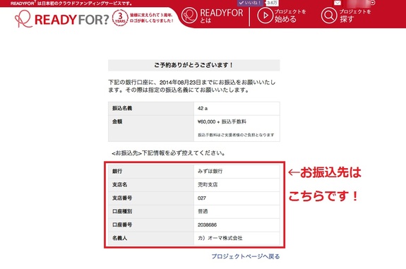 ・銀行振込は、新規登録(過去にREADYFORで支援を行ったことが無い方)の