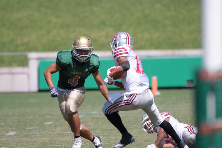 ブロッカーに当たり負けない強さ、フィールドに散りパスを防ぐ俊敏性を兼ね備え、適格な指示をもってディフェンスを統括する。