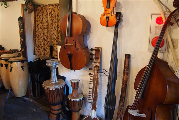 美味しい料理と美味しいお酒、楽しい音楽の3要素が合わさり、一度にたくさんの楽器に触れ、音を気にせずみんなで楽器をかき鳴らすことができる空間です!