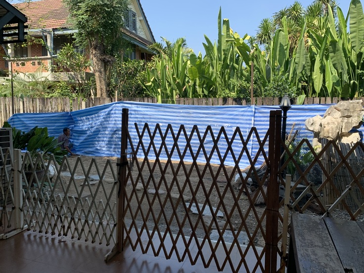 仮に、境界線として、ビニールシートを設置し、残りの狭い庭ではどうもトイレがうまくできません。特に外に散歩に行けない犬は、戸惑いを隠せない状況で、犬たちも我慢のしどころ、本当に申し訳ないです。