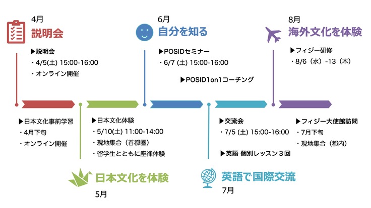 2025年夏もフィジー研修を予定しています。ひとりでも多くの子どもたちに参加してほしいと願っていますが、欧米よりも比較的コストがかからない国とはいえ、円安や価格高騰により参加しづらい状況が続いています。 今回この活動に共感してくださる皆さんに参加またはサポートしていただき、みんなで実現できたらと思っています。
