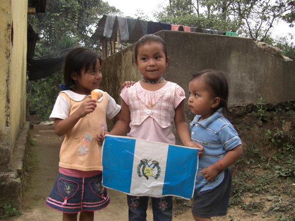ラ・フロリダの子どもたちが持っているのがグアテマラの国旗です。あれ?さかさまですね。