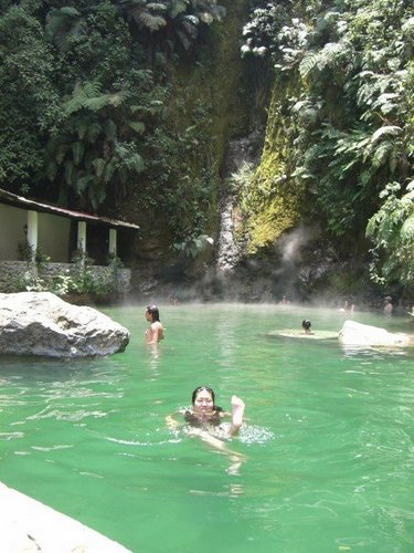 ケツァルテナンゴ州のFuentes Georginasという自然の露天風呂。間抜けな格好の私です。