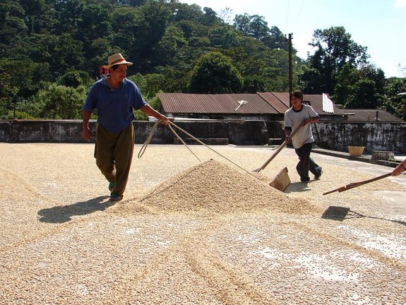 <コーヒー乾燥作業 豆の湿度が正しい数値になるまで何日も繰り返される重労働>