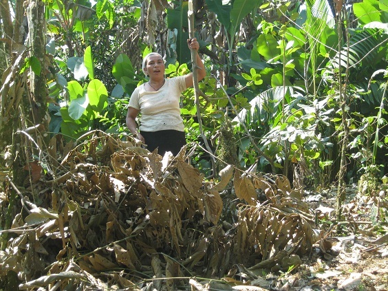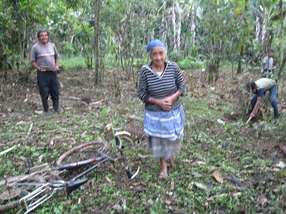 エコ・ツーリズム担当のドーニャ・ロサウラ。共同体中心から一歩農園に足を踏み出せばこのようなジャングル!ジャングルの中から新しい家に仕えるものを探しています。