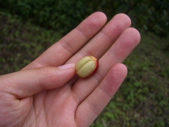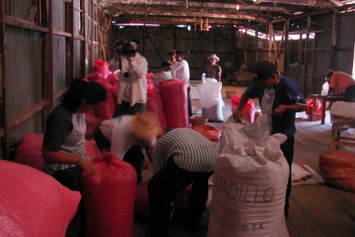 収穫した豆を皮むき機にかけてこの赤い皮ははいでしまいます。ラ・フロリダではこの皮を発酵させて肥料にしています。