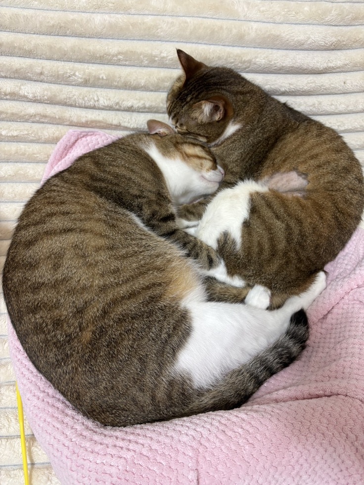 2匹とも寝てる時に、私も何時間か寝てしまって見ててあげれなかった時、いつのまにかグリグラが一緒に寝てました。
