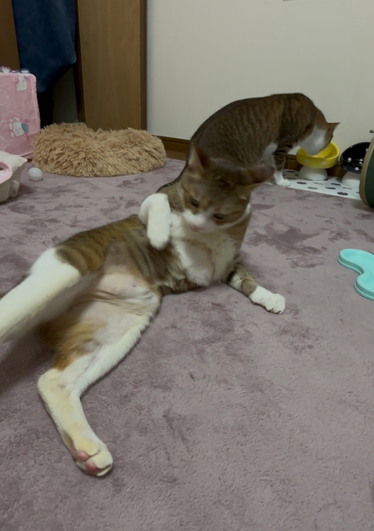 お腹の傷も綺麗になって、少し前までは嫌がっていたのですが、お腹も触らせてくれるようになりました。