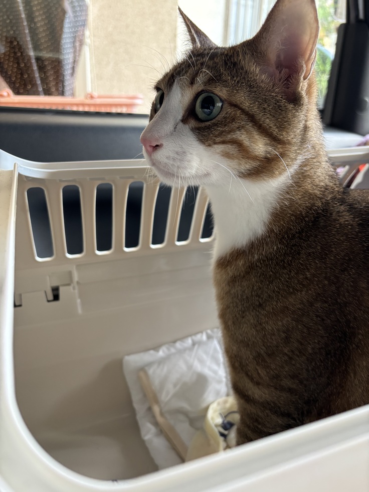 前はキャリーに入ってくれるまでかなり時間がかかっていたのですが、「はい!入ってね!」と言うと入ってくれるようになりました。