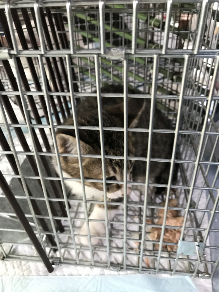 1匹の猫は崩壊現場から持ち込まれた猫でかなり痩せていたため、たんぽぽで保護することになりました。