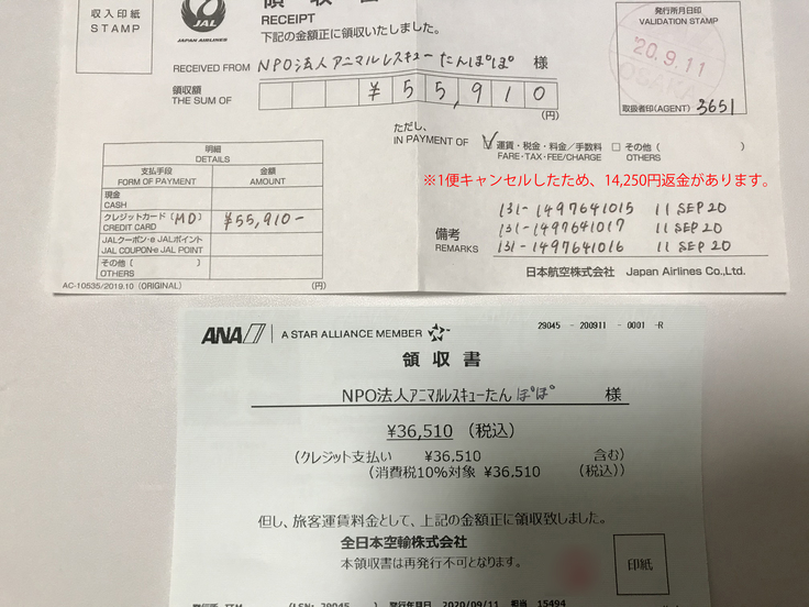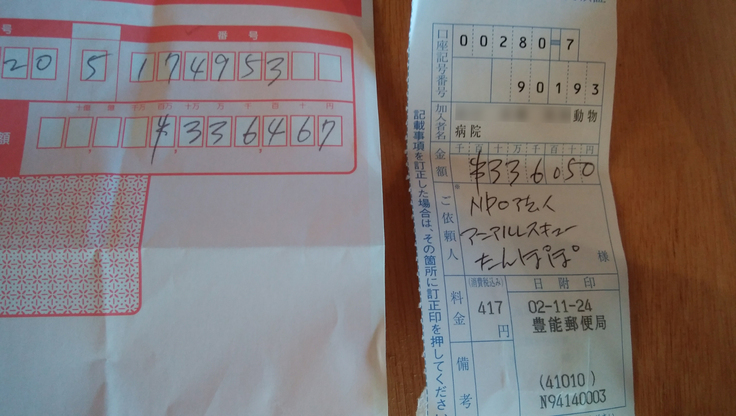 ※残金はたんぽぽの活動費用として、動物たちのために大切に使わせていただきます。