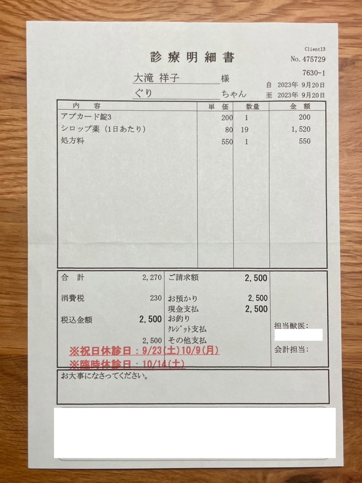 本来であれば、全額をぐりくんのために大切に使わせていただく予定でした。