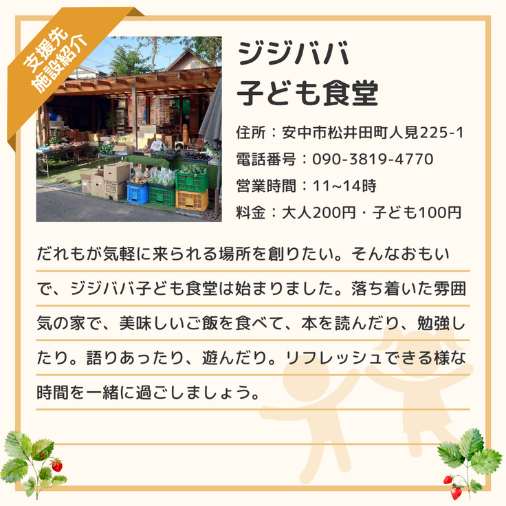 本日ご紹介する支援先は「ジジババ子ども食堂」さん!✨