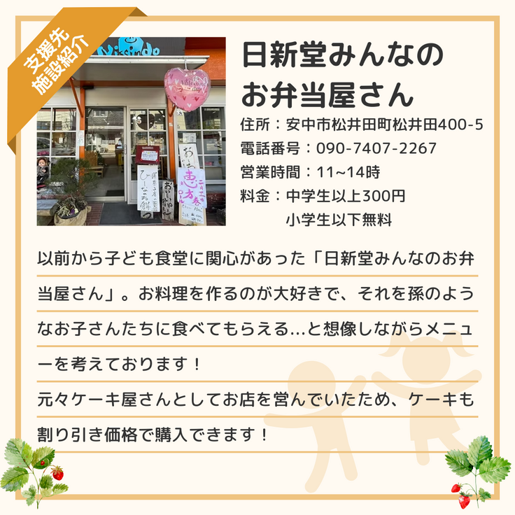 本日ご紹介する支援先は「日新堂みんなのお弁当屋さん」さん!✨