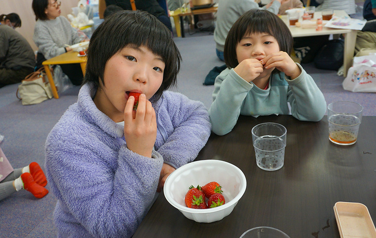 摘みたての大きくて甘酸っぱいいちごを口いっぱいに頬張る子どもたち🥰🥰