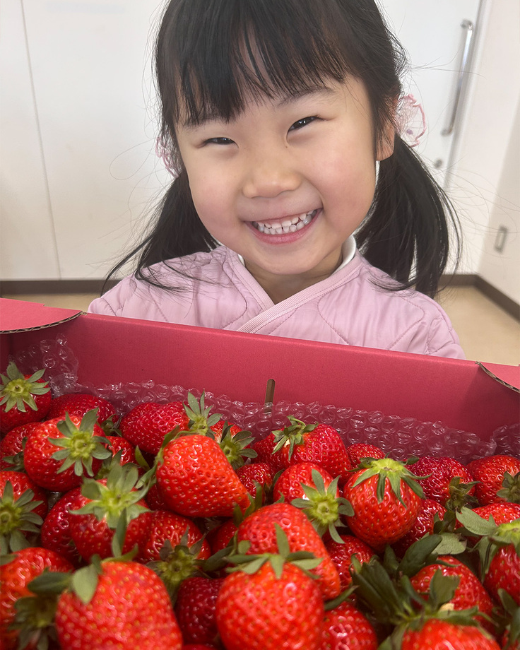 箱いっぱいのいちごを手に、この素敵な笑顔😍😍