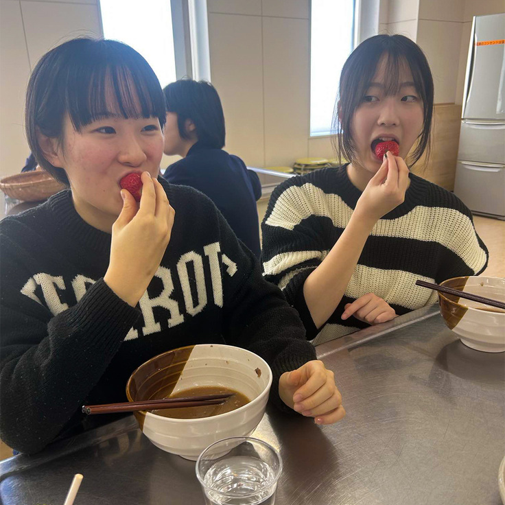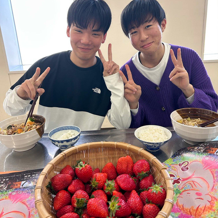 学生のみなさんも食後のデザートとして 、「おいしい!」 と笑顔でいちごを食べてくれました✨✨✨