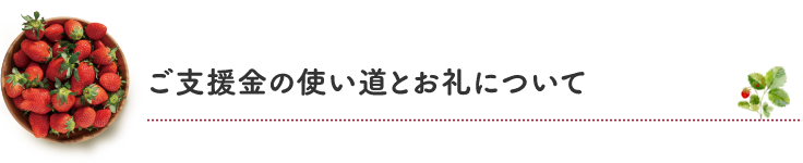 皆さまからのご支援金は、農園自慢のいちご【やよいひめ】or【よつぼし】の寄付と、それに伴う活動に必要な費用へ充てさせていただきます。