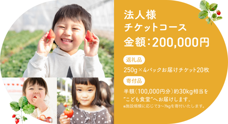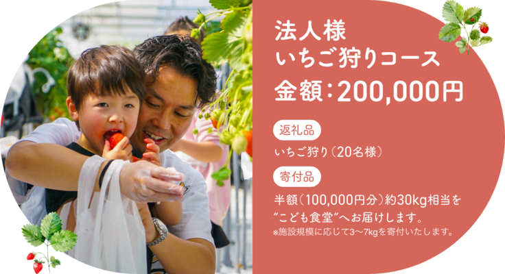 ・¥200,000のご支援で、約30kg相当のいちごをこども食堂および福祉施設に届けていきます。