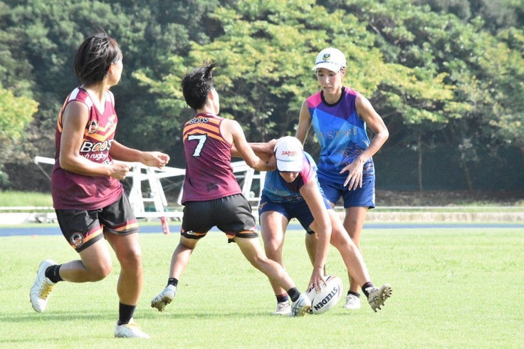 私たちは日本で唯一男女混合で活動するタッチラグビーチームです。所属選手の半数が日本代表候補生として活動しており、中でも青柳七瀬、山形ありさ、岸笙子は過去ワールドカップに3度出場し、女子最多出場の選手となっています。企業チームではなく学生も所属するチームで、私たちは仕事や学業と並行しながら、平日や休日に練習に励んでいます。