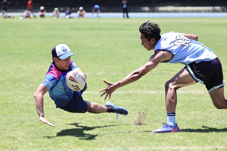 なんといっても魅力は疾走感あふれるプレーとゴール際のすれすれの攻防です!タッチラグビーは基本プレーが止まる瞬間がなく、選手交代や攻守交替もプレーが進みながら起こります。また、髪や服でも触れたらタッチになるため、タッチを交わしながらのトライは迫力と繊細さが合わさったものになっています!