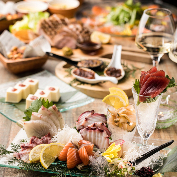 肉は牛ステーキ、炙り、ロースト、魚は、牡蠣料理、和風アクアパッツァ、鮮魚のカルパッチョなどをご用意