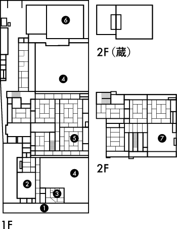 敷地西側に並び建つ、切妻造本瓦葺2階建ての土蔵。道具や建具、行事などで使う衣装を保管していました。
