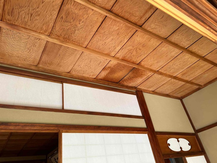 しかしながら、一度売却され、3年ほど空き家となっていたこの建物は老朽化が進んでおり、室内の天井には雨漏りで雨染みができ、屋根瓦や板金の庇を取り替える必要があります。