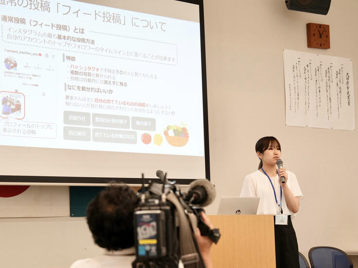 大田原市農業委員会の女性委員で構成された「チームあゆみ」と連携し、大田原市の農家・畜産家を中心とした市民向けに「SNSによる経営スキルアップ講座」を2023年に2度開催しました。インスタグラムを使って生産物を効果的にPRし、販売につなげた生産者さんもいます。2023年7月の回は、下野新聞やNHKニュース「とちぎ630」でも紹介されました。今後は、ネット販売につなげるための応用編も開催予定です。
