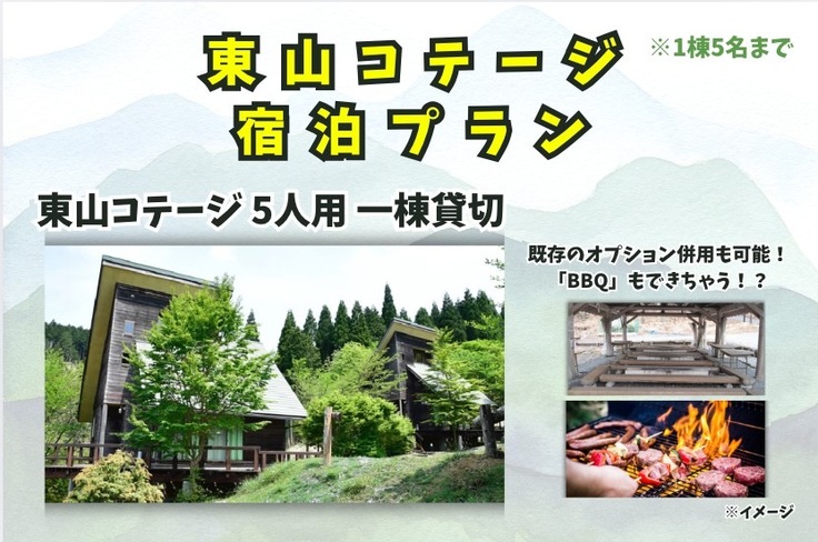 ② 東山コテージ宿泊プラン(1組5名様まで)75000円