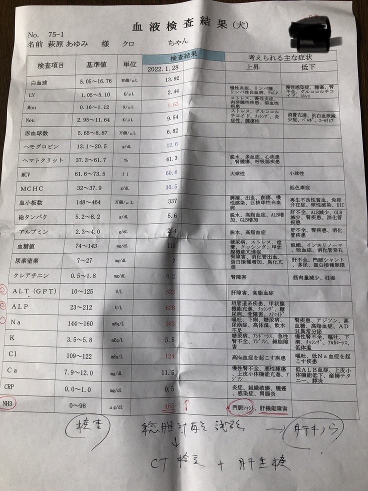 稀な病気だけど【門脈シャント】の可能性が高いと説明を受けましたが更に詳しくCT検査しないと確定は出来なくてそのCT検査が出来る病院が近くには無くて名古屋の病院に行かなきゃできないし、費用も高額かかると言われましたがすぐに検査を受けてクロを早く元気にしてあげたいと先生に伝え名古屋の病院に紹介状を書いて頂き検査の予約をしました。