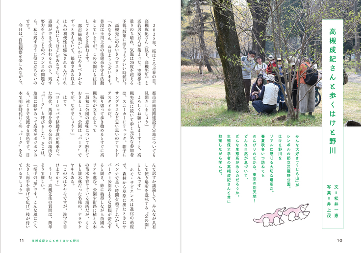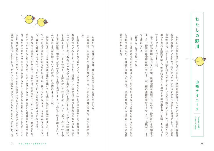 「エッセイ編」では、小説家の山崎ナオコーラさんをはじめ、小金井ゆかりの人びとが野川とはけへの思いを綴っています。
