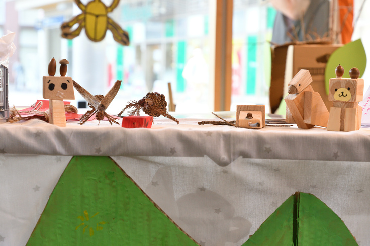 はけとの側で採取した自然材料の工作アニメーションワークショップ、