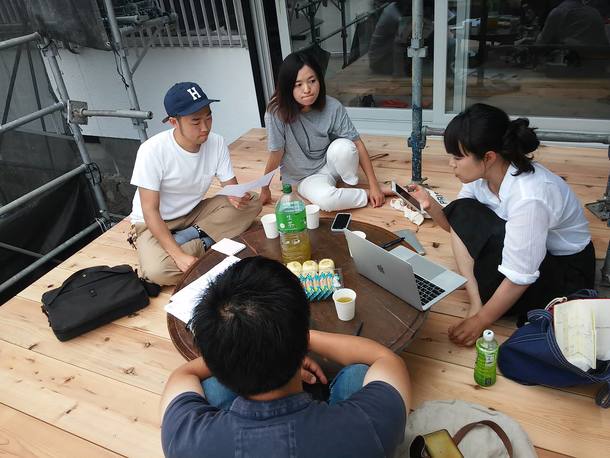 学生たちの手でウッドデッキが完成! 箱バル会議はちゃぶ台で