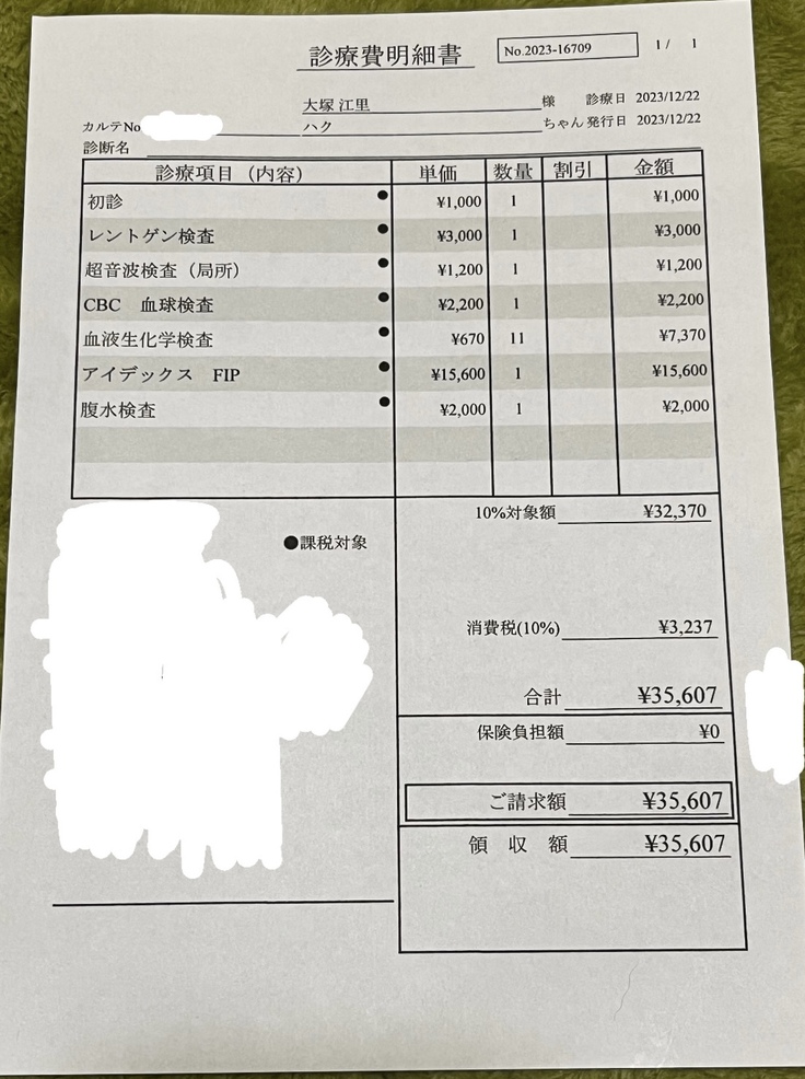 しかし、ハクの通院費・高額な治療薬・その他検査代等…経済的に厳しい状態が続いているのが現状です。