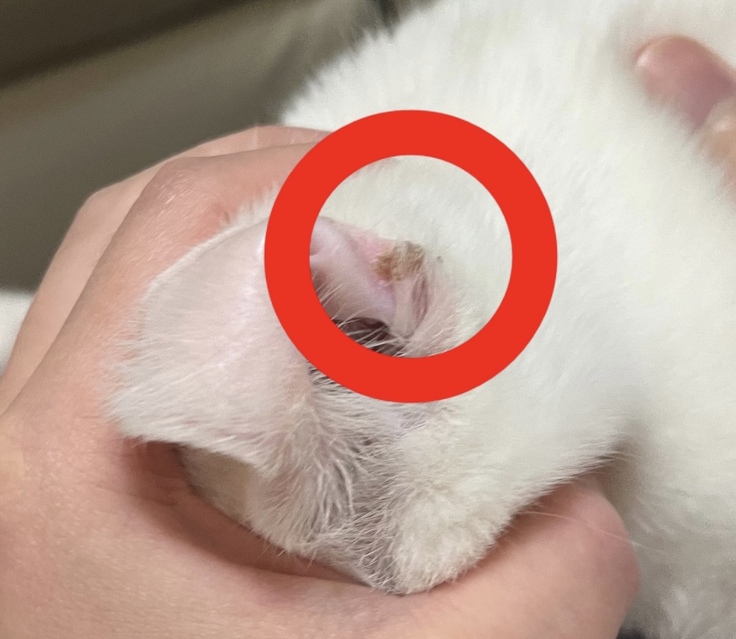 ハクの耳にカビの様なものを発見。