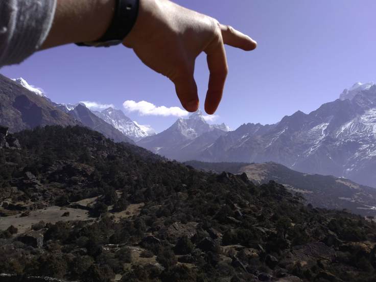 Amada blam(6952m)is stands on Himaraya.It between my finger!