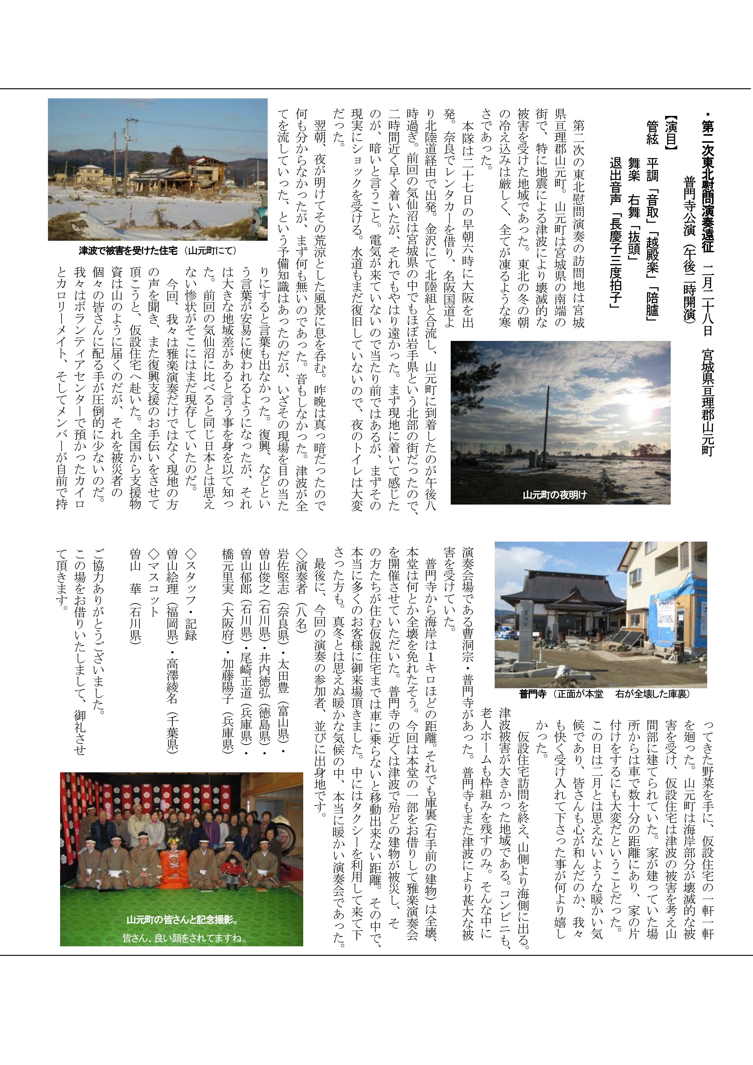 第二次の雅楽慰問演奏は2012年2月末、訪問先は宮城県亘理郡山元町でした。