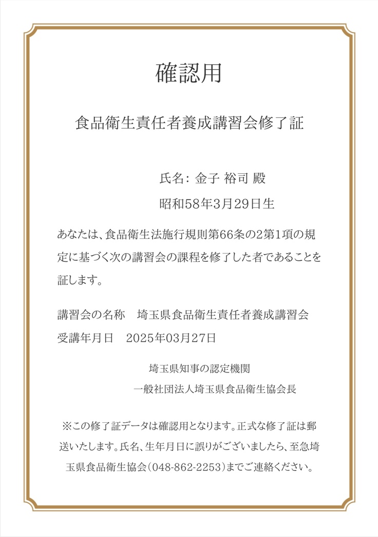 食中毒を引き起こさないような方法についてたくさん学びました。