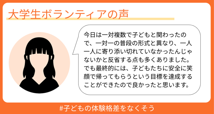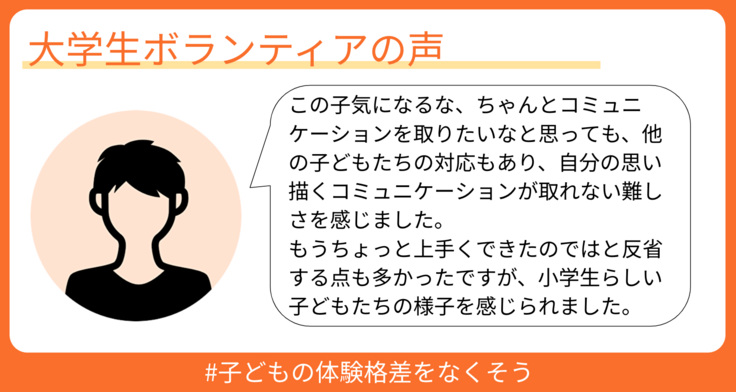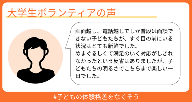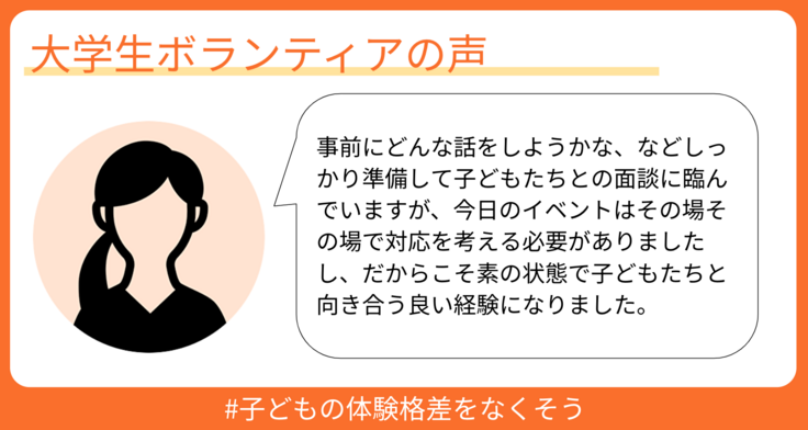 今回はイベントに参加した大学生ボランティアの感想をお届けします。