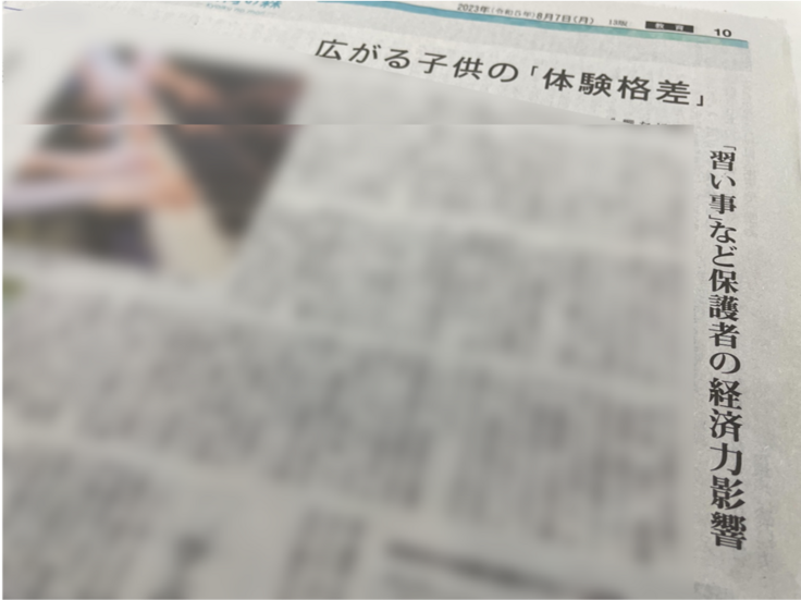 【メディア掲載情報】毎日新聞(8/7朝刊)で子どもの体験奨学金事業について取り上げていただきました!