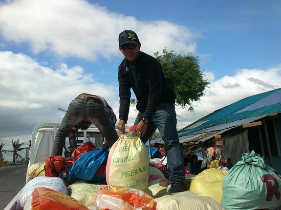 (台風ヨランダ緊急支援時の様子。代表自らが動きます。)