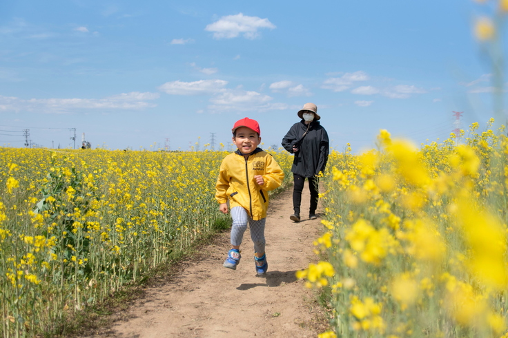 今年は春先から暖かい陽気が続き予想以上に菜の花の生育が早く、ゴールデンウィーク迎える前に咲き揃ったため、予定よりも一週間開催を早めました。来場者の多いゴールデンウィーク後半には黄色い花びらも残り少なくなりましたが、それでもご来場いただいた方、特にお子さん達には、例年と同じように目いっぱい楽しんでいただき、沢山の笑顔を残していただきました。
