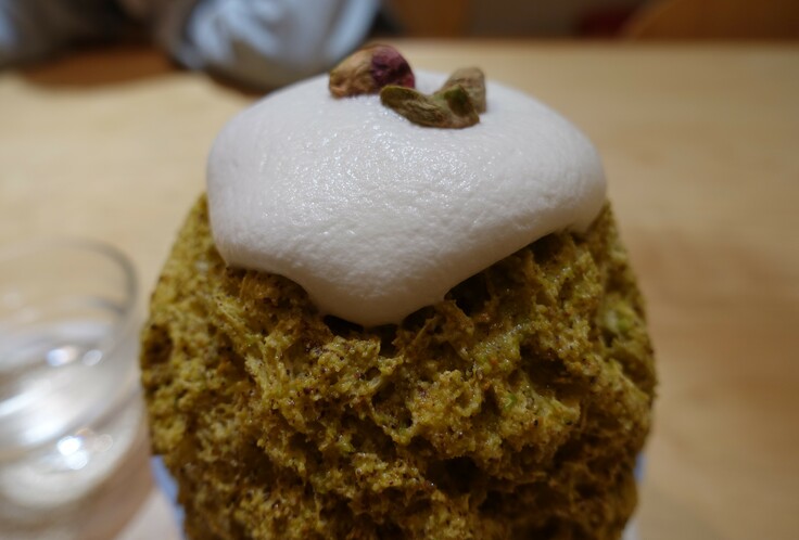 このかき氷は奈良県の「ほうせき箱」さんのピスタチオのかき氷です。