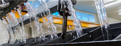 静岡県浜松市には多くのかき氷店があるだけでなく、全国屈指の素晴らしい氷を作る製氷会社さんもございます。その中でも大正創業の「舞阪純氷」さんと南アルプスを源とする天竜川伏流水を使用して氷を作る「ソーラーアイス(浜松純氷)」さんが有名です。通常48時間かけて作る氷を「純氷」といいますが、舞阪純氷さんは国内唯一煉瓦で囲まれた建物の中で昔ながらの水槽を使い、職人さんが-8℃前後の温度で120時間かけてゆっくり作るため国内トップクラスの硬さと溶けにくいのが特徴です。また「ソーラーアイス」さんも-6℃の高い温度で72~96時間じっくりと時間をかけ作ります。こちらも溶けにくく、透明度の高いクセのない氷となります。