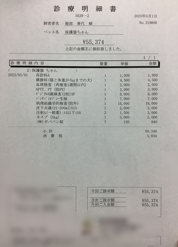 ページ上に掲載している診断書や診療明細書などの資料は全て動物病院から掲載の許諾を得ております。