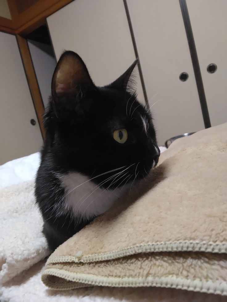 夜中目が覚めた時に、テーブルの上ではなく私の頭上でひっそり目を開けて固まっているはなちゃんがいてビックリしました😅